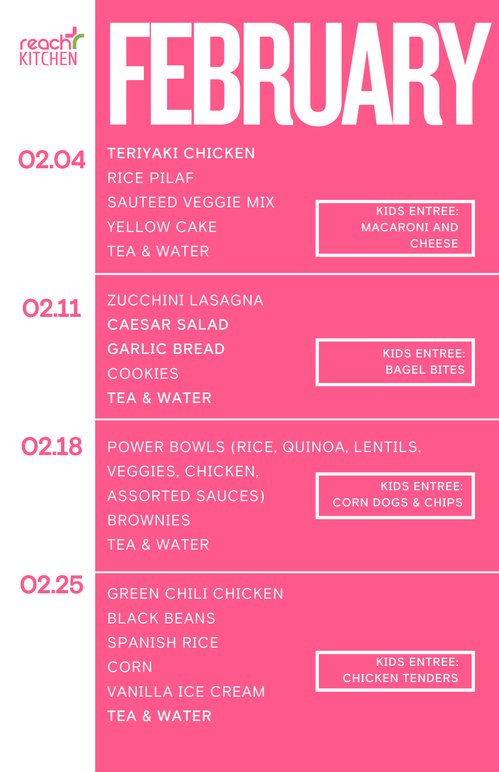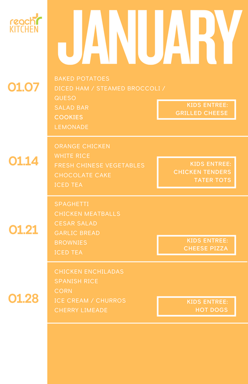 Please join us each Wednesday evening from 5pm to 6pm for dinner made by our Reach Kitchen Ministry!