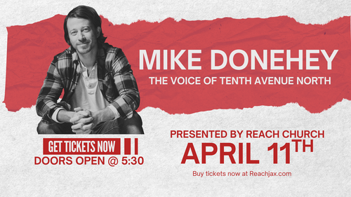 Join us for a wonderful night of amazing Christian music with Mike Donehey, the voice of Tenth Avenue North, on Saturday, April 11. Doors open at 5:30 and the concert starts at 6:00. All children 3 and over must have ticket. Purchase your tickets HERE and we will see you there!