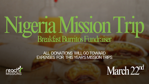 This Sunday, join us as we enjoy breakfast burritos and help support the team going to Nigeria this summer. We will serve them between services and after 2nd service.