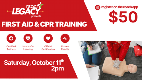 Legacy is excited to partner together and support one another by learning a practical skill: CPR! We hope you can join us on Saturday, October 11, at 2:00 p.m. at the church. You must pre-register for this event. If you have questions, please reach out to Jan or John Wright and click below to register and pay for this event.